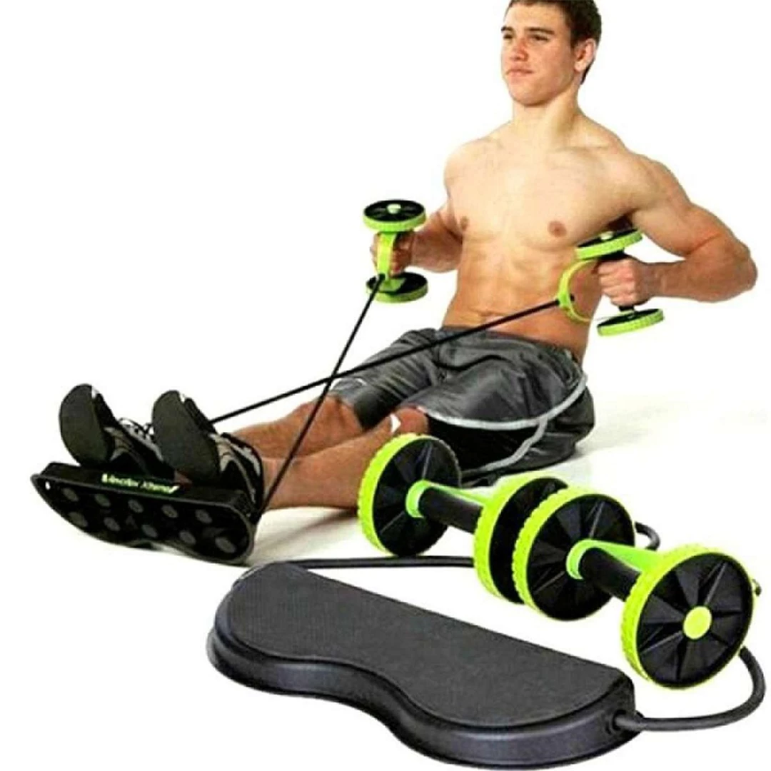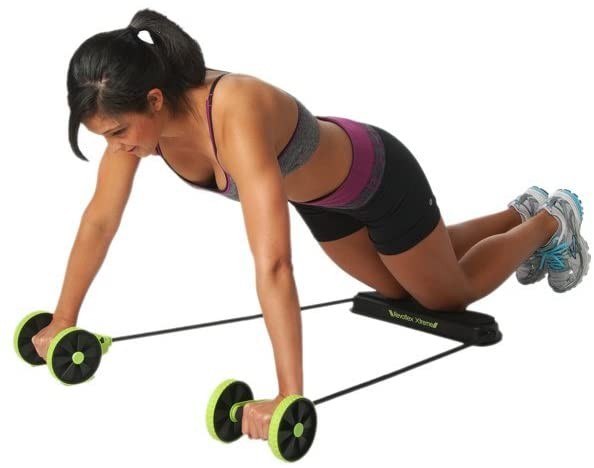 The Revoflex Xtreme is a compact and portable fitness tool that enables users to engage in a variety of exercises targeting different muscle groups. Its central component is a resistance wheel that is connected to flexible resistance bands. Users grip the handles and roll the wheel along the ground or other flat surfaces, creating a dynamic and challenging workout. The device is particularly effective for strengthening the core, including the abdominal muscles, while also engaging the arms, back, and legs.