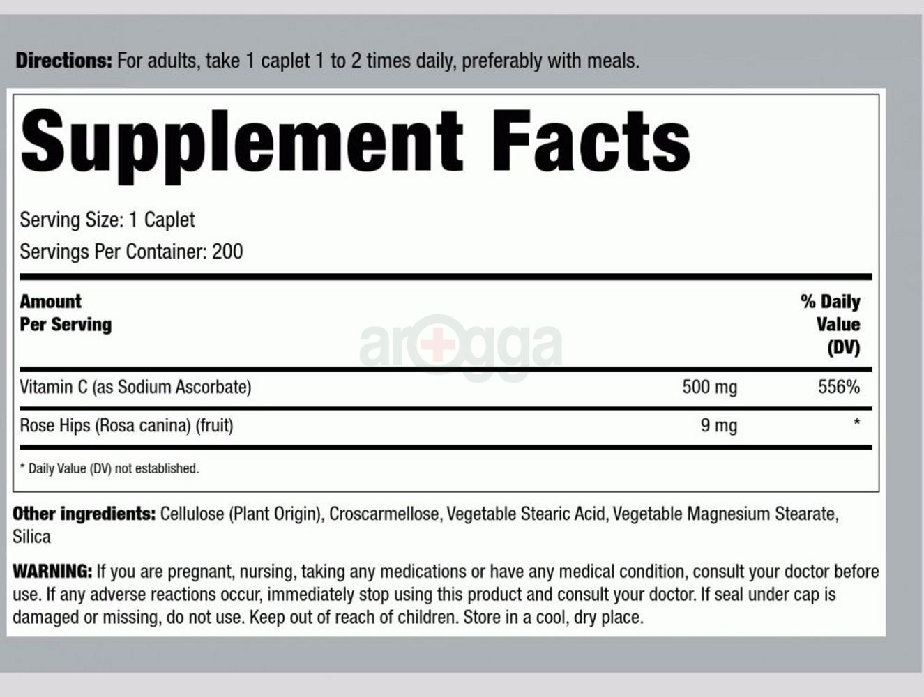 Vitamin C 500 mg with Wild Rose Hips, 200 Caplets